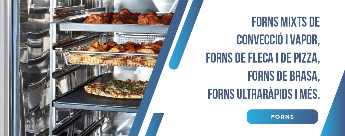 Forns industrials mixtos, amb cocció al vapor, convecció i combinada. Models analògics i models tàctils, programables i amb autorentat.