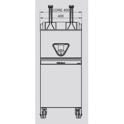 Fregidora súper ràpida Valentine Core C400 T, amb capacitat de 15-18 L i una producció de 46-54 Kg/hora. Mides de la cistella: (2 x) 158 x 285 x 135 mm. Control mitjançant termòstat electromecànic. Cuba inox embutida d’una peça sense soldadures i resistències pivotants cap amunt, per facilitar la neteja. Aixeta de bola amb seguretat, fàcil de manipular. Con de buidatge amb zona freda de recuperació de residus. Sistema patentat d’estalvi d’energia Diàleg Sistema: augment de productivitat gràcies al sistema de potència programada. Connexió trifàsica.
