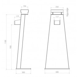 Columna de base ampla amb suport per allotjar gel hidroalcohòlic i sabó amb base de 117 x 119 mm. Suport per a caixa de guants, paper o mocadors, amb base de 252 x 134 mm, amb tapa regulable en alçada. Robust i fàcil d'instal·lar (s'entrega desmuntat). Construcció íntegra en acer inoxidable AISI 304 18/10 satinat, per a permetre una fàcil neteja i mantenir una màxima higiene. Frontal personalitzable. Al no dependre de connexions ni fixacions podem col·locar-loon més ens convingui.