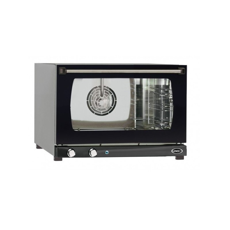Forn de convecció per a fleca, model Arianna, de la sèrie Miss, fabricat per Unox. Interior i exterior en acer inoxidable. Porta batent amb doble vidre i llum interior. Comandaments analògics. Frontisses testades per a 100.000 obertures. Junta de la porta hermètica. Humidificador manual. Amb sistema AIR Plus, DRY Plus, STEAM Plus i PROTEK Safe. Capacitat: 4 safates de 46 x 33 cm.