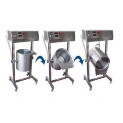 Pastadora en calent o màquina per a coure cremes fabricada per Inhospan, model AMC 24, amb calder de 24 L de capacitat. Tres posicions de treball: elaboració-cocció (amb utilizació de pales), omplert o neteja, i buidat (amb extracció de pales). Ideada per a elaborar qualsevol tipus de massa o salsa ja sigui sense temeratura o amb cocció. Variador de velocitat.
