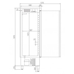 Armari de refrigeració de la sèrie Snack, amb doble porta inox vertical, model ARS-75-2 de Docriluc. Exterior en acer inoxidable AISI 304 18/10, excepte el respatller. Interior en acero inoxidable AISI 304 18/10, amb arestes corbes i fons embotit. Portas d'obertura reversible, amb sistema de tancament automàtic i rivet magnètic que manté oberta la porta al superar els 90º d'obertura. Contraporta inox embotida. Llum interior. Estants interiors de varetes en acer plastificat, regulables en alçada. Peus en tub d'acer inoxidable ajustables en alçada 125-200 mm. Quadre de comandaments i reixeta de ventilació del motor, desmuntables. Unitat de condensació ventilada. Evaporador sistema tiro forçat, amb recobrimiento anticorrossió. Aturada ventiladors tiro forçat a l'obrir la porta. Evaporació automàtica de l'aigua del desglaç. Aïllament de poliuretà injectat, densitat 40 Kg/m3, baix GWP i zero efecte ODP. Control digital de temperatura i desglaç, eficient en la gestió del consum d'energia. Temperatura ambient de treball màxima: 32ºC. Temperatura de treball: -2ºC +8ºC Capacitat: 520 L. Estants: 3 Refrigerant: R 290 Pes: 122 Kg Potència: 484 W Tensió: 230 V monofàsica Mides: 695 x 700 x 2115 mm