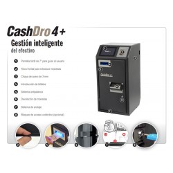 Caixa de cobrament automàtic Cash Dro 4+. El seu format compacte permet col·locar-la pràcticament a qualsevol lloc, amb opció d’ancoratge al taulell o al terra. Rebutja bitllets i monedes falses. Disposa de cassette per a 1.500 monedes i cassette per a 400 bitllets. Incorpora 4 recicladores amb capacitat per a 30 bitllets cadascun. És compatible amb un gran nombre de programes de gestió de qualsevol tipus de negoci. Sistema antipalanca, amb xapa de 3 mm de gruix a tot el moble i a la porta. Gran pantalla per facilitar la visibilitat. Tancament de caixa instantani i sense desquadraments. A més, millora el servei al client, la imatge del negoci i garanteix la higiene alimentària. Garantia d’1 any. Instal·lació, posada en marxa i manteniment del primer any inclosos.