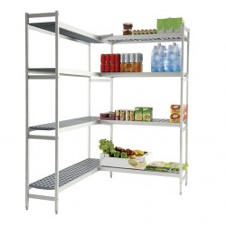 Soportes escalerilla (caballetes): pueden suministrarse en 1670 y 2000 mm de altura para los fondos de 370 y 470 mm; y en 1750 y 2000 mm para el fondo de 560 mm. Disponen de pies regulables para adaptarse a cualquier tipo de suelo, y están mecanizadas para fijación de estantes de 150 mm.