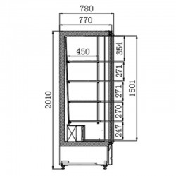 4 líneas de estantes sólidos reforzados de 500 mm de anchura, fabricados en chapa pintada en color negro (estantes extra disponibles). De dotación se suministran 4 estantes por puerta. Estos estantes están diseñados para presentación de bebidas y alimentos, ideal para supermercados y tiendas de alimentación.