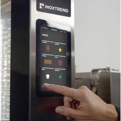 Horno a gas mixto convección/vapor con capacidad para 7 bandejas GN 1/1. Mandos combinados digitales y pantalla táctil. 2 velocidades de ventilación. Inversión de giro del ventilador. 150 programas pre-establecidos y otros 150 libres. Precalentamiento automático. Función Cook & Hold. Conexión USB. Autolavado. Sonda al corazón de serie.